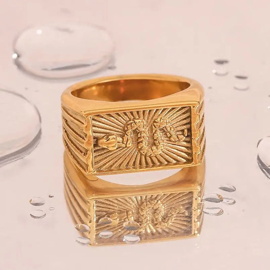 Snake Sunburst Chunky Signet Ring