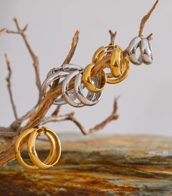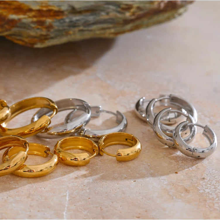 Available in 13mm, 17mm, and 22mm. Wear them solo for a hint of shine or stack them up for that curated ear look. Lightweight, waterproof, and tarnish-resistant — ready for whatever your day throws at you.