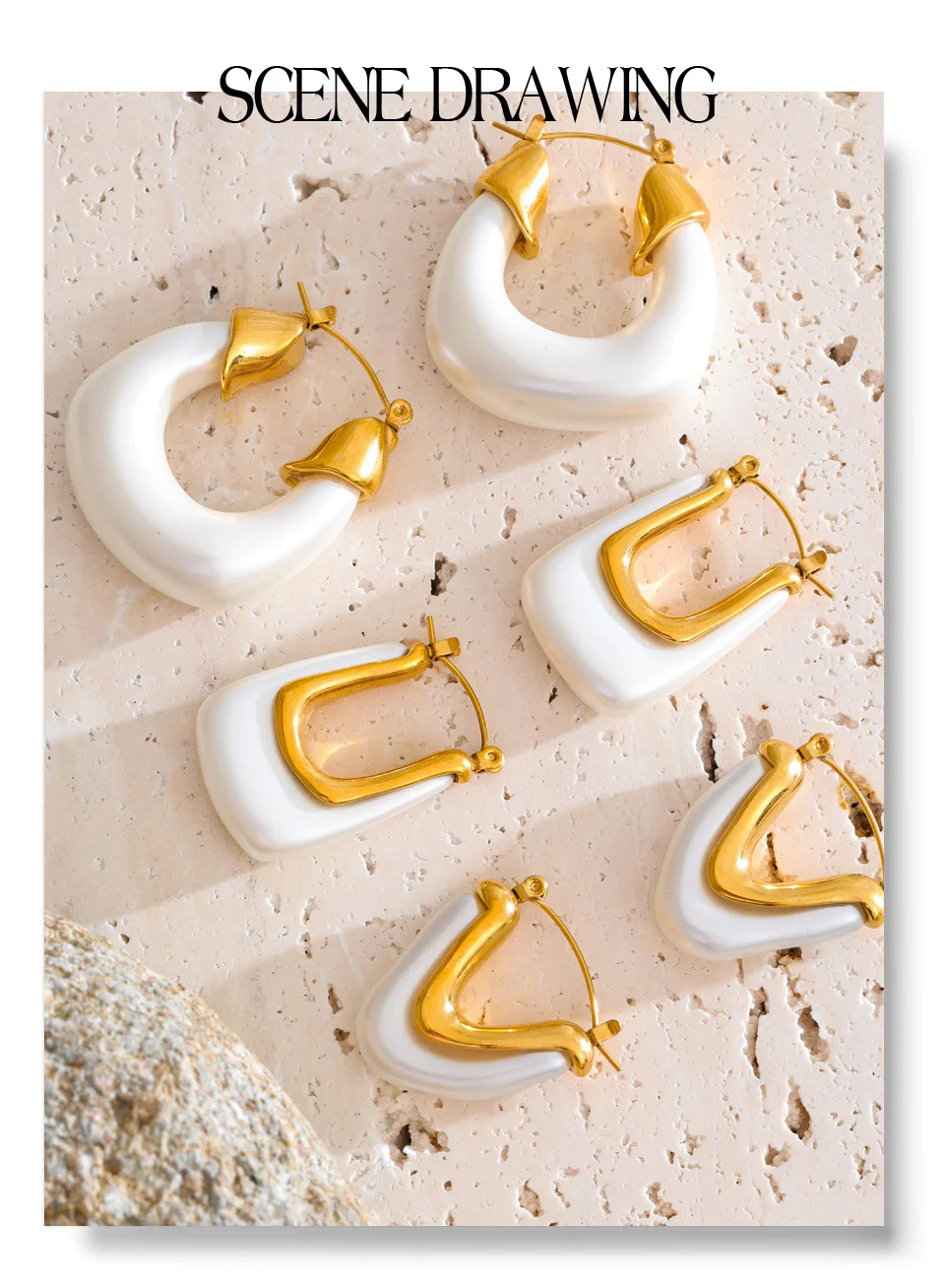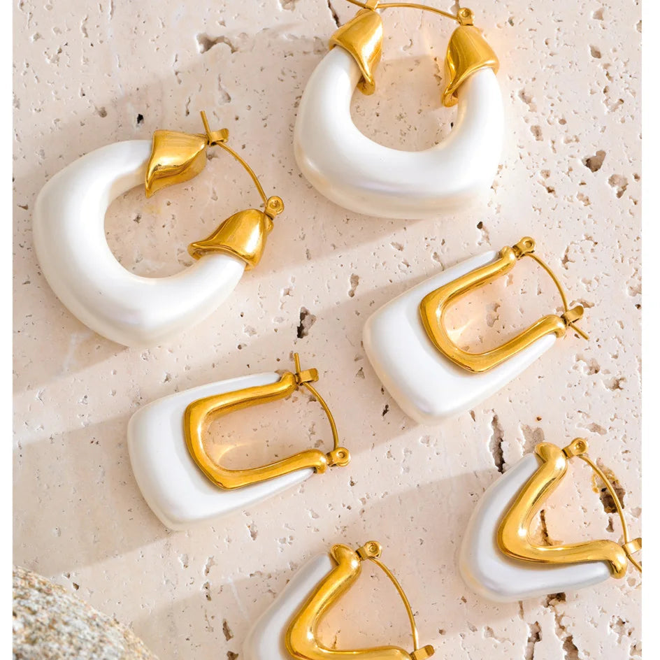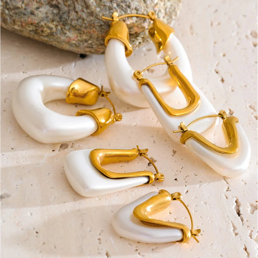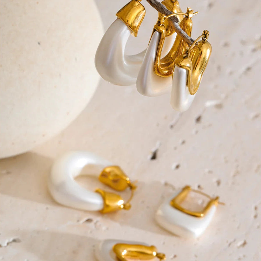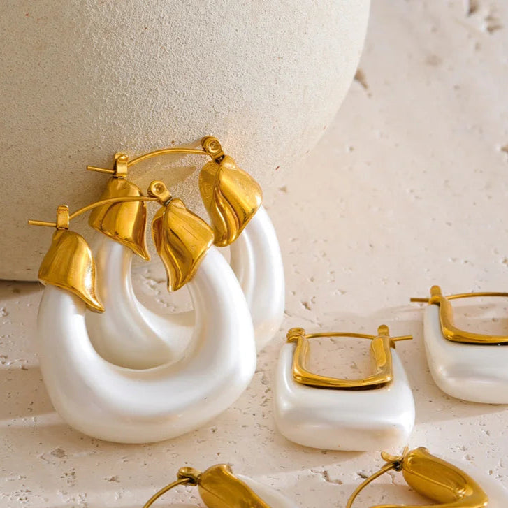 It’s 5pm somewhere - hair salty, skin sunkissed, hoops catching that last light. The Coastal Muse Hoops blend pearlescent resin and molten gold for the kind of shine that pairs perfectly with linen and a margarita in hand.