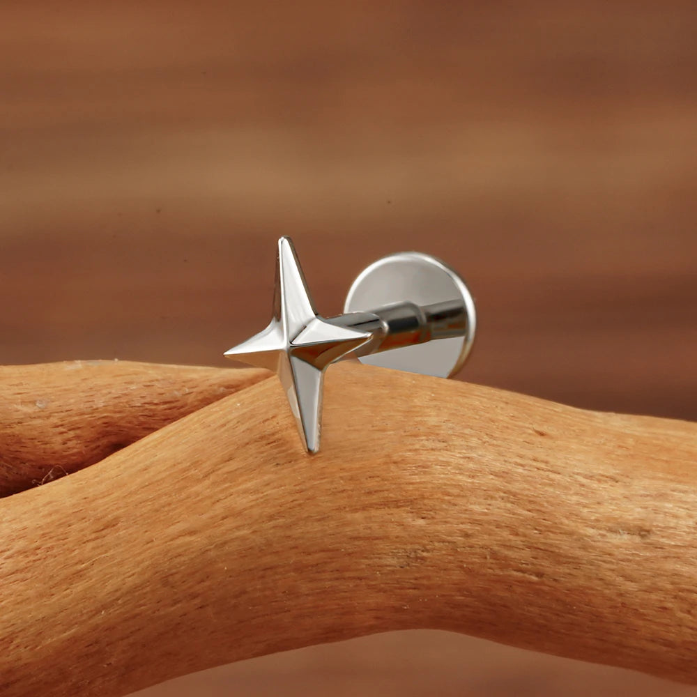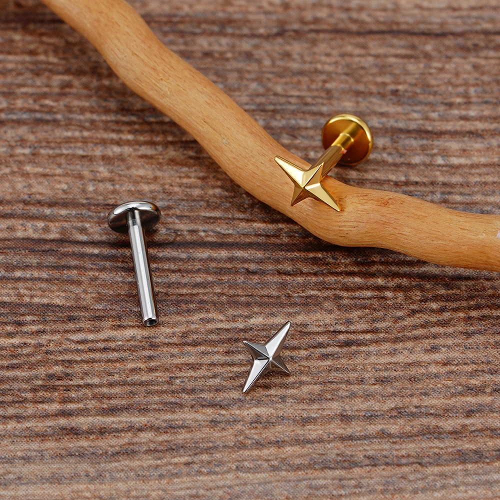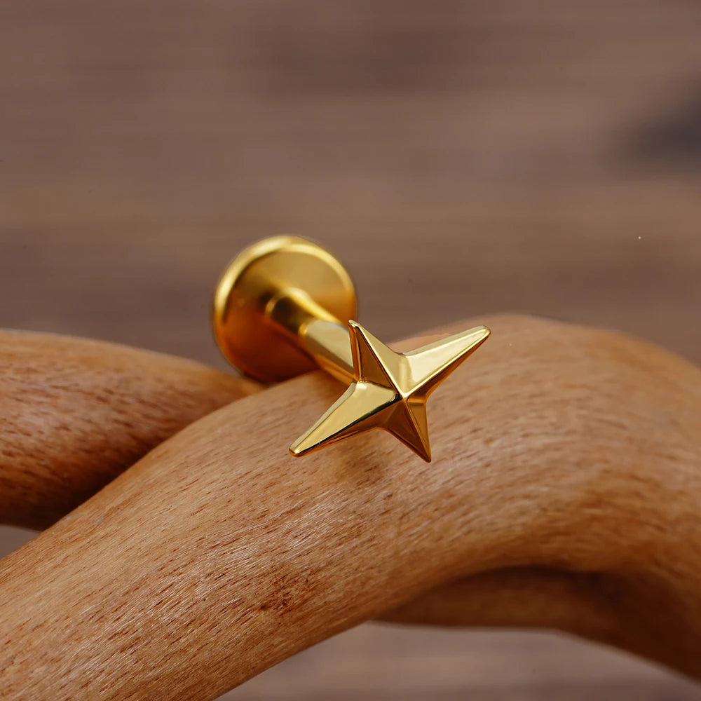 Sleek starburst flatback crafted in implant grade titanium with gold PVD — hypoallergenic, durable, and made to shine.